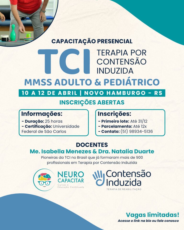 Informações: Em sua 3ª edição, cursos reunindo base científica sólida, prática clínica e aplicação real da TCI, em uma parceria entre a Neurocapacitar Cursos e Educação Continuada e o Grupo Contensão Induzida.